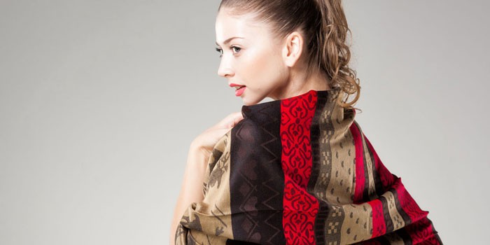 - шалевий аксесуар просто накинути, закріпити брошкою, декоративної ґудзиком, аналогічно можна укласти хустку на сумку.