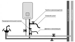 Щоб уникнути цього, у систему монтується запобіжний клапан. Встановлюють його в трубопровід з холодною водою перед самим бойлером. Спрацьовування його відбувається при тиску 8 бар. Діє він так — якщо тиск в бойлері нижче, ніж у підвідної труби з холодною водою, в нього надходить вода. Як тільки тиск вирівнюється, відбувається спрацювання клапана. При роботі нагрівача в позаштатному режимі, з тиском 8 бар і вище, відбувається спрацьовування малого клапана і злив надлишкової рідини. Слід подбати про її відвід, приєднавши до висновку клапана гумову або пластикову трубочку відповідного діаметру.