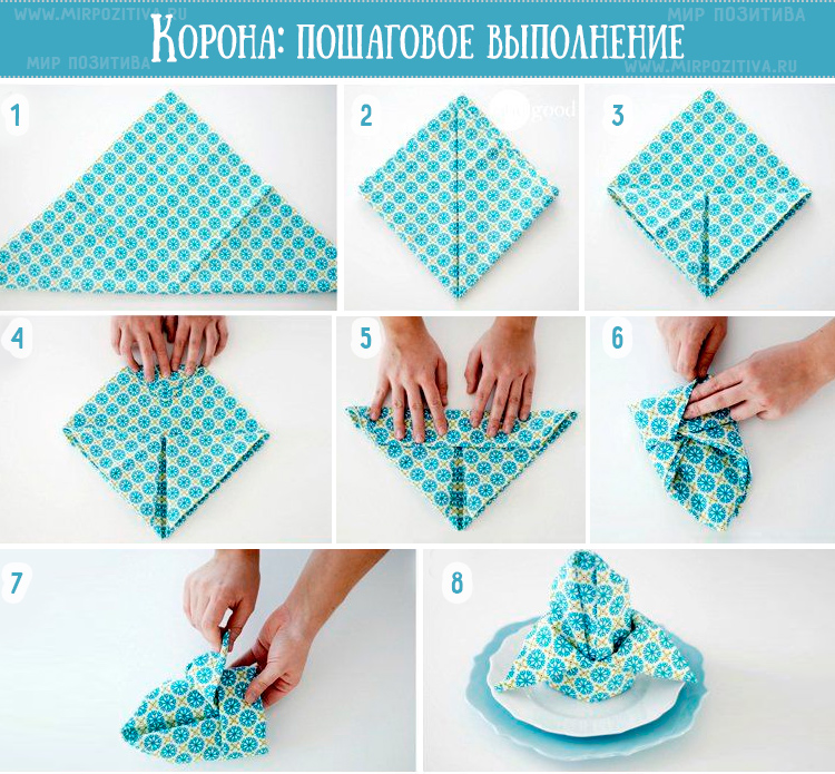 Ще одним популярним способом є укладання серветки у вигляді корони.