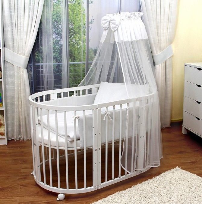 Якою б не була модель, основні конструкційні елементи залишаються незмінними – передня, задня і бічні спинки, дно і ніжки. І відштовхуючись від такого «убогого» набору, дизайнери створили безліч моделей різних форм і функціоналу. Сьогодні можна без зусиль відшукати не тільки традиційні прямокутні, але й овальні і навіть круглі ліжечка. Вишуканості виробу надають різні декоративні елементи. Наскільки це необхідно і зручно вирішувати споживачу.