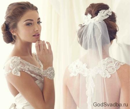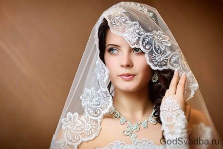 - особа витягнутої форми в тандемі з широкою, середньої довжини і пишною фатою візуально розширить вузьке обличчя. А висока зачіска – категоричне табу.