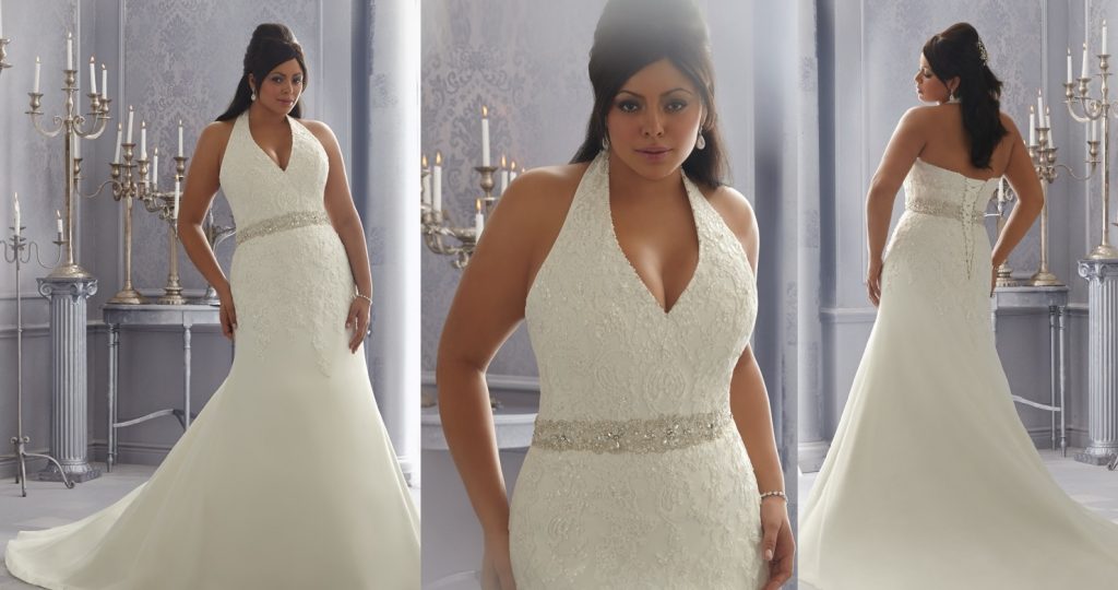 Зазвичай наречені з повною фігурою намагаються візуально зробити її стрункішою, але роблять помилки, які дають зворотний ефект. Наприклад, не можна вибирати плаття з рукавами, адже біла тканина повнить, і зробить руки і плечі ще більше. Бажано віддати перевагу поряд з бретелями і v-подібним вирізом, він буде помітно стрункості. Від рукавичок також варто відмовитися, вони візуально додають зайвої ваги і роблять образ більш важким. Відмінним варіантом буде елегантне плаття А-силуету, без зайвих деталей, видобувних обсяг.