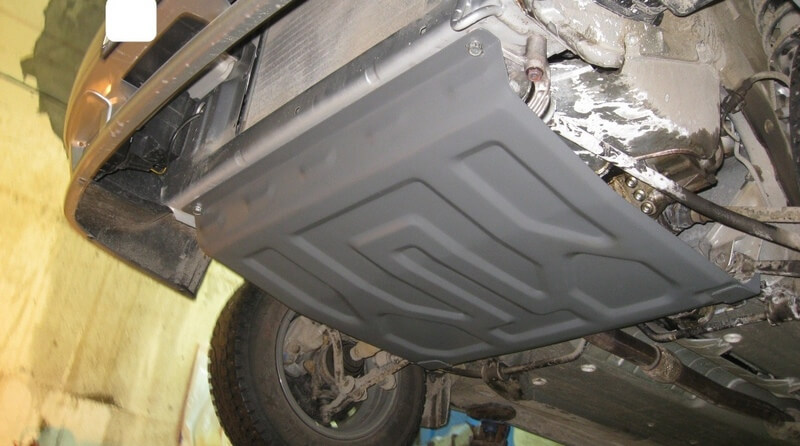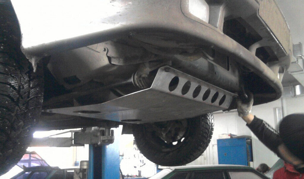 - Зніміть кріплення захисту двигуна – це кілька самонарезов, які викручуємо за допомогою ключа на 8;
