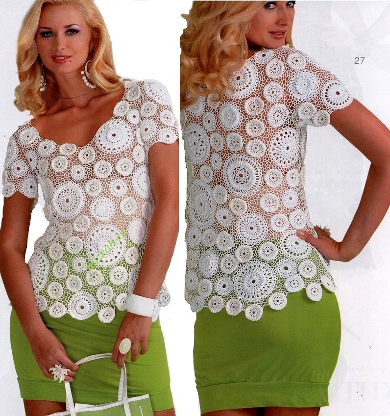 Сьогодні ми розповімо вам, як в’язати гачком ірландське мереживо, схеми багатьох виробів, виконаних у цій техніці ви знайдете у нас на сайті, але сьогодні ми розглянемо схему в’язаного гачком жіночого топа.