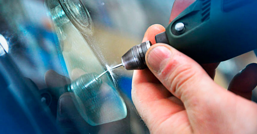 Щоб у процесі обробки тріщина не розійшлася ще більше, лобове скло потрібно послабити, тобто зробити тиск трохи менше. Для цього на відстані 2 міліметрів від закінчення самої тріщини (або біля кожної, якщо їх декілька) потрібно виконати наскрізний отвір за допомогою електричної дрилі.