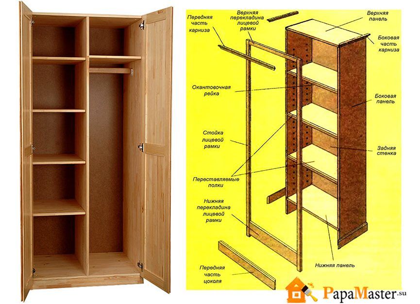 ДОВІДКА! Для посилення конструкції, поверх ДВП можна набити діагональні розпірки. Міра актуальна для шаф з распахивающимися дверима, оскільки вони часто відчувають бічні навантаження, здатні ослабити з’єднання.