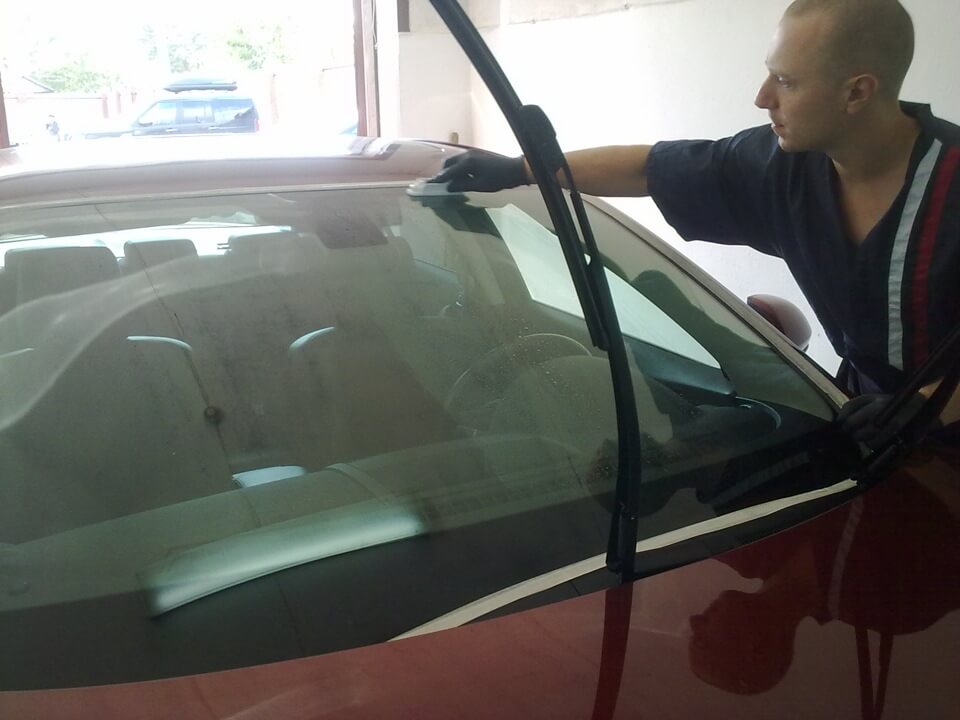Нанесення засобу «антидощ» на лобове скло машини
