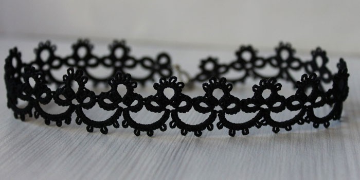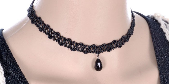 Щоб зробити чокер з мережива своїми руками, теж буде потрібно мінімум матеріалів та інструментів. Гарніше буде виглядати, якщо по центру підвісити який-небудь аксесуар, наприклад, кулон. Крім цього знадобиться сама мереживна стрічка з довжиною трохи більше обхвату шиї і застібки. Якщо матеріал занадто легкий, то ще потрібна буде стрічка. Технологія виготовлення чокера наступна: