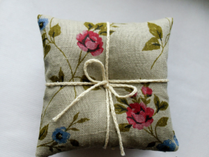 Вкласти маленьку подушечку з наповнювачем в мішечок і зав’язати вузликом з атласної стрічки. Ось і готовий чарівний і дуже ароматний мішечок. Додатково можна пришити петлі і вішати його на плечі у шафі.