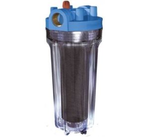 Для фільтрації води використовують спеціальні промислові вироби, Принцип дії у них ідентичний. H2O пропускається через спеціальні наповнювачі, на яких осідають тверді фракції, хімічні та інші сполуки. Агрегати зручні у використанні, естетичні, кінцева продукція нешкідлива для організму. Недоліки пов’язані з малим об’ємом прокачується рідини, швидким виходом з ладу фільтрів.