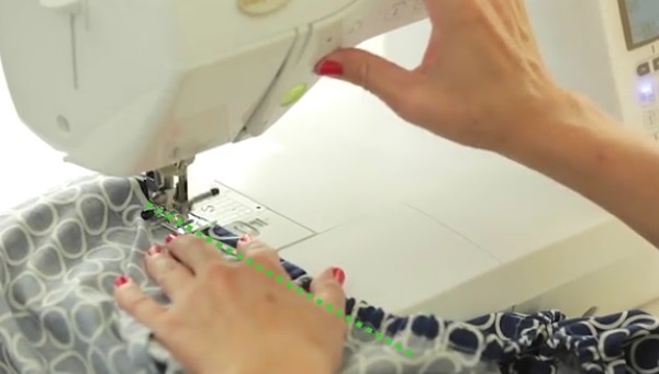Ще раз підверни краю на 1,5 см і сколи їх. Проший сходинку по периметру. При цьому залиш по боках від кожного кута (в 20 см від кутового шва) незашитые отвори по 2,5 див. Через них буде вставлятися гумка.