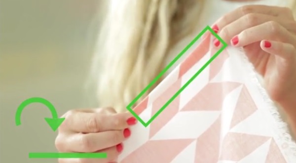 Зігни полотно, з’єднавши вирізані боку кожного квадрата між собою. Лицьова сторона тканини повинна виявитися при цьому всередині.