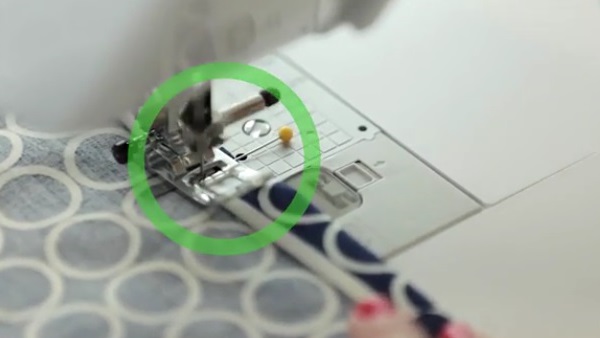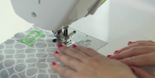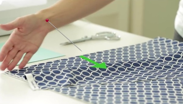Заколи шпильками місця з’єднання тканини у кутах. Потім проший в кутах рядки з припуском в 1 див.