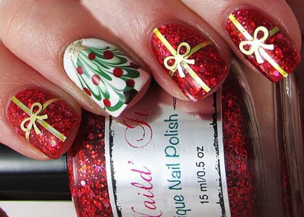 - Що стосується манікюру, то тут політ фантазії не обмежений. Будь новорічні візерунки можуть бути присутніми на нігтях. Важливо, щоб нігтики гармоніювали із загальним стилем. Тони для покриття можна вибирати відповідно до наведеної колірній гамі. Червоний – класичний колір для манікюру теж допустимо.