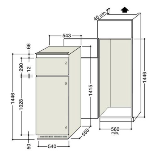- Внутрішній об’єм ящика не повинен піддаватися впливу нагріву від кухонної плити або інших елементів. Врахуйте, що газові плити можуть нагрівати холодильник, навіть незважаючи на перегородку від шафи. Розташовуйте ці предмети побутової техніки на відповідній відстані один від одного, як зазвичай при розташуванні.