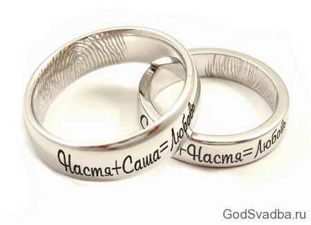 Кільця молодят теж не залишилися в стороні від модернізації загальноприйнятих правил. Раніше всі наші бабусі і мами вірили в прикмети. Тому ні про які гравировках, написи і знаки мови не йшло. Важливим аспектом слугувало і те, що кільця передавалися у спадок. І специфічні написи, що належать тільки двом людям, були б неактуальні для іншої пари.