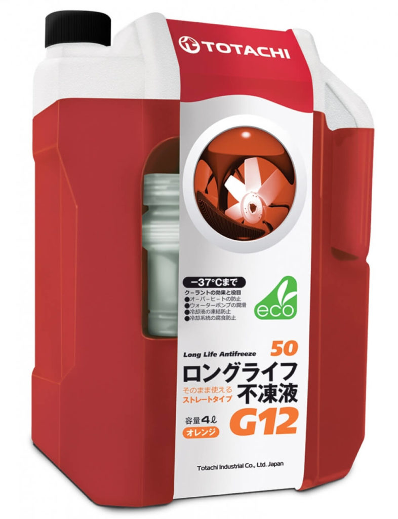 TOTACHILONGLIFEANTIFREEZE 50 G12 – продукція японського бренду, яка годиться для охолодження бензинових двигунів і дизелів. У складі відсутні неорганічні присадки. Замерзання відбувається при -37 С, а закипання – при +106 С, що відповідає існуючим нормам. Величезною перевагою цього варіанту є довгий термін служби, він становить 5 років.