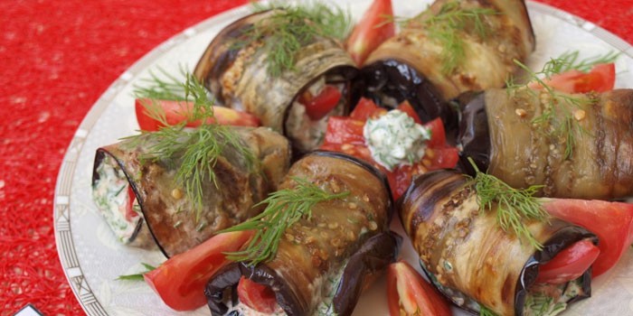 Ця закуска – майже делікатес: волоські горіхи, пікантний соус, італійська повітряна рікотта – від проби не втриматися. Ніжні рулети з баклажанів з сиром подають холодними. Вони чудово поєднуються з будь-якими травами і зеленню, добре доповнюються білим сухим вином. При бажанні їх можна з’єднати з пастою, щоб зробити ситне блюдо для святкового вечері.