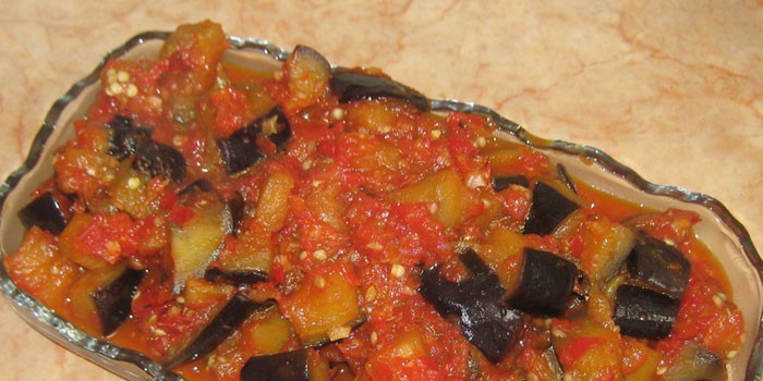 Альтернативний варіант заготовки на зиму, але з більш ніжним смаком і ароматом. Рецепт належить грузинській кухні, тому володіє дуже цікавим поєднанням солодощі та гостроти. Така закуска з баклажанів з помідорами не зашкодить фігурі, тому можете сміливо робити побільше баночок – взимку вона полетить вмить. Обов’язково збережіть собі цей рецепт.