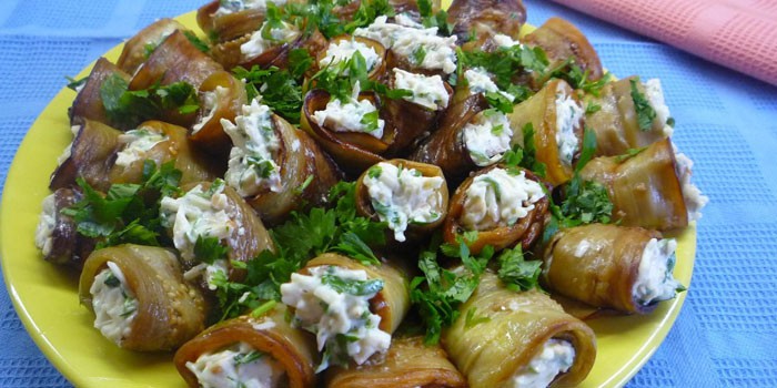 Велика частина закусок на основі синеньких – смажена, особливо якщо говорити про рулетики, для яких обов’язкова така термообробка. Тим, хто боїться зробити занадто жирне блюдо, етап з жаркою можна замінити запіканням – тримати в духовці їх потрібно всього 15-20 хвилин. Якщо вам незрозуміло, як завертати рулетики з баклажанів з сиром і часником, орієнтуйтеся на докладені до рецептом фото.