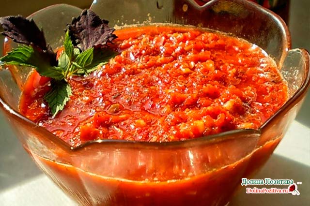 Відгуки кажуть, за цим рецептом виходить обалденная сильна аджика — чоловіки в захваті. Спробуйте приготувати і ви.