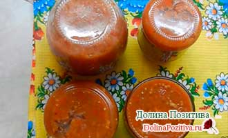 Розкладаємо соус в гарячому вигляді по банках, які заздалегідь стерилізуємо.