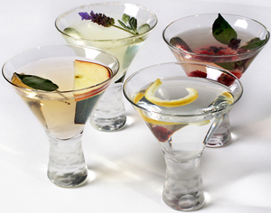 - Об’єднані — напої подаються на одному підносі, але в різному посуді. Наприклад, індивідуально кожному гостеві пропонують піднос з келихом вина, фужером шампанського і склянкою соку, або сервірують ними фуршетний стіл.