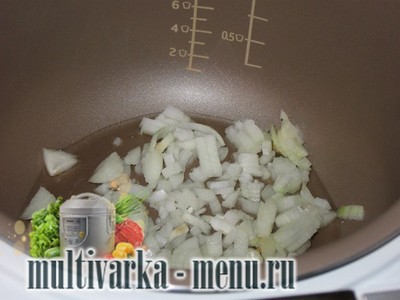 Відправимо його в ємність для приготування їжі в мультиварці. Обсмажимо його з двома столовими ложками рослинного масла.