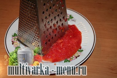 Тим часом натремо на тертці помідори, які ми заздалегідь промили під холодною проточною водою.
