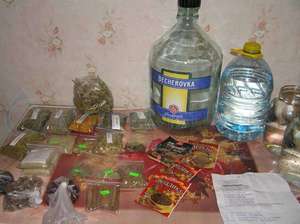 • спиртосодержащий продукт, фортецею в 55 %, горілка, самогон (1,2 л);