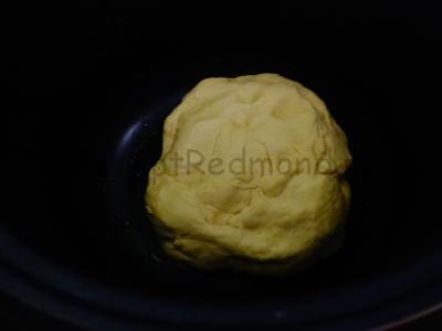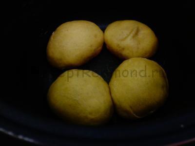 Замісити тісто (його місять доти, доки воно не почне відлипати від рук). Стінки і дно чаші мультиварки змастити маслом і викласти тісто. Закрити кришку, виставити режим «Йогурт» на 1 годину.