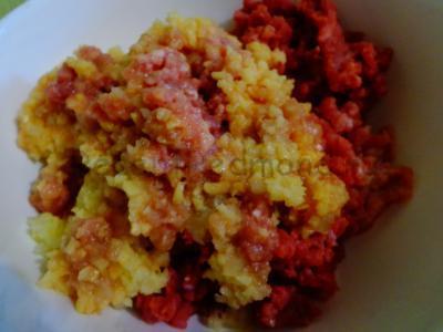 Отриманий фарш перемішати з хлібом, замоченим в молоці, посолити.