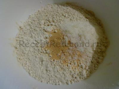 Щоб дріжджове тісто добре піднялося, молоко повинно бути теплим. Підігріти його можна в мультиварці, мікрохвильовій печі або звичайною алюмінієвої каструльки на плиті. Поки молоко гріється, змішати сухі інгредієнти: борошно, дріжджі, сіль і цукор.