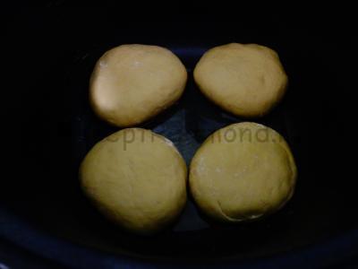 На дно чаші налити соняшникову олію (30 мл). Викласти біляші (4 шт.).