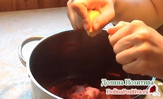 • Додайте цибулю, часник і лимонку. Знову перемішайте. Тушкуйте масу півгодини при слабкому кипінні. Постійно помішуйте.