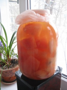Далі, витримуючи температурний режим (близько 20-25 градусів), залишаємо її одужувати. В середньому процес бродіння займає 10 діб, але може і збільшуватися або зменшуватися. Тому не перестаємо контролювати бродіння, пробуємо періодично брагу на смак, дивимося, триває характерне «булькання». Замість дріжджів можна використовувати натуральну закваску, але і в цьому випадку брага буде «гуляти» в рази довше.