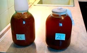 Пиво, варення (краще, якщо воно буде старе і забродившее), цукор змішують і заливають охолодженою до 30°З кип’яченою водою. Отримане сусло переливають у велику сулію з вузьким горлечком, зав’язують марлею і залишають бродити на 10– 5 днів.