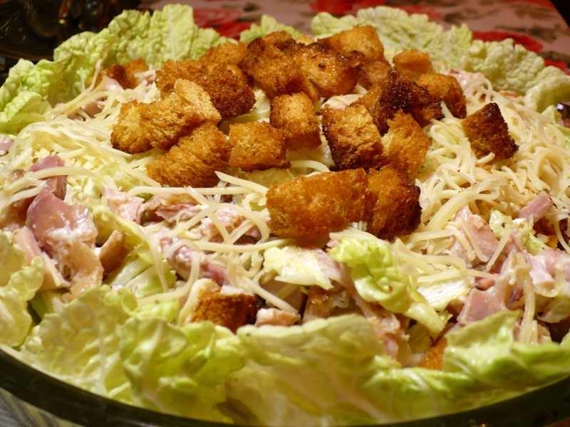 • Сухарі додати зверху у разі, якщо салат буде поданий відразу.