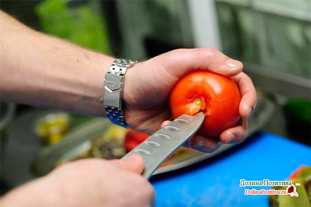 На замітку! Водянисті помідори в хріновині роблять консистенцію рідкої. Тому після того як ви нарежете томати, дайте їм постояти хвилин 15. Потім злийте сік, що утворився.