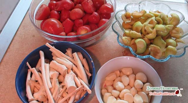 Кількість інгредієнтів не вказано на очищені і порізані плоди. Підготуйте компоненти і приступимо до приготування.