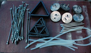 Крім того, потрібні будуть два штуцера, шланги, напівдюймова муфта, використовувана в сантехніці, гумова аптечна трубка (або крапельниця), шматок алюмінієвої смуги, наприклад – гардина, два анкерних гачка і капронові кришки для банок.