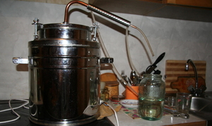 - Дистилятори вважаються класичними апаратами для варіння самогону. Їх конструкція була розроблена кілька століть тому. Основний їх функціонал полягає в нагріванні спирту до кипіння і подальшого процесу конденсації його парів в охолоджувальному змійовику.