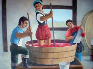Після того, як плоди готові до подальшого процесу приготування вина, приступають до підготовки сусла (соку, віджатого з ягід). Рецепт досить консервативний. В дерев’яній тарі виноград або інша обрана ягода ретельно віджимається. Робити це слід руками, а якщо обсяг великий, то дерев’яним товкачем. Використовувати для тисняви ложки або інші металеві толкуши вкрай не рекомендується. Отриманий сік не повинен стикатися з металевими поверхнями, так як це окислит сусло, тим самим зіпсує його. При отриманні соку для домашнього вина важливо не пошкодити кісточки плодів, інакше вони додадуть напою небажану гіркоту. Після віджимання ягід, тара має бути заповнена соком і мезгою на ѕ свого об’єму.