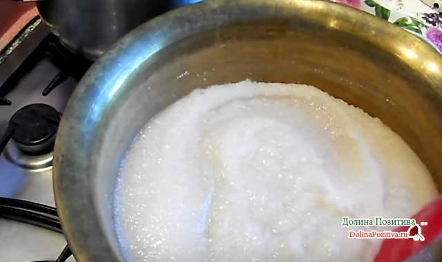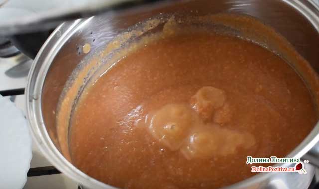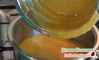 Пюре перекладаємо в каструлю, включаємо газ на мінімум. Вогонь не додаємо протягом 15-20 хвилин варіння. Додаємо цукровий пісок за смаком.