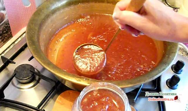 Гаряче вміст розливаємо в стерилізовані банки. Закриваємо тару пластмасовими або металевими кришками гвинтовими. Солодкість зберігається і при кімнатній температурі.