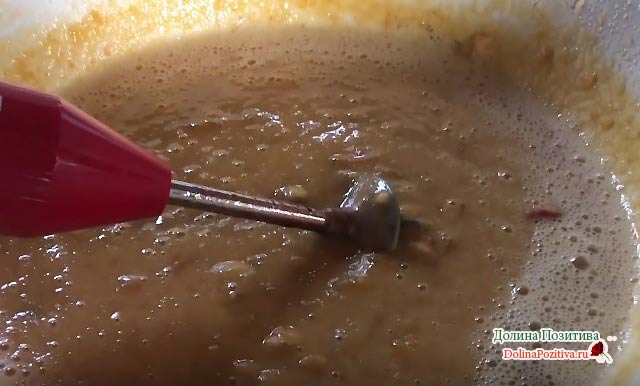 Приберіть таз з плити, нехай варення постоїть до ранку. Вранці процедуру повторіть. Через 20 хвилин варіння, подрібніть фрукти блендером і варіть ще 10 хвилин.