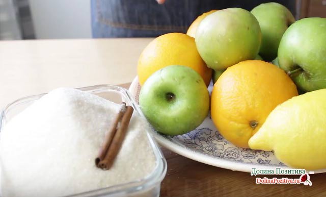 Простий рецепт з яблук, апельсинів, лимона і кориці