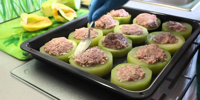 Є кілька різних способів обробки. Приготувати кабачки фаршировані просто. Перш за все необхідно підготувати їх: добре промити і видалити плодоніжки. Далі кабачок нарізати кружками, циліндрами або уздовж. Серцевиною з насінням витягують, а утворилося простір заповнюють фаршем з м’яса, грибів, круп або інших продуктів. Потім блюдо кладуть на деко, запікають в духовій шафі протягом зазначеного в рецептурі часу.