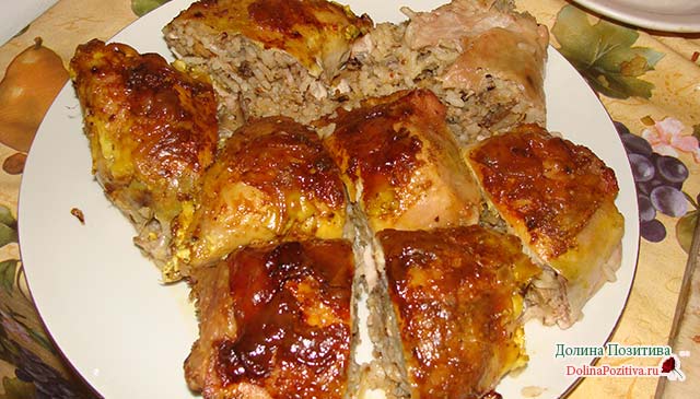 Фаршировані стегенця, начинені фаршем з волоськими горіхами