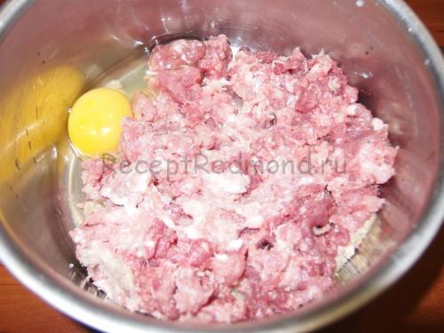Приготуйте фарш, як на звичайні котлети — перекрутіть свинину на м’ясорубці з однією цибулиною, посоліть, поперчіть і додайте яйце. Яйце тут обов’язково, так як саме воно зможе утримати фарш в макаронине при варінні.